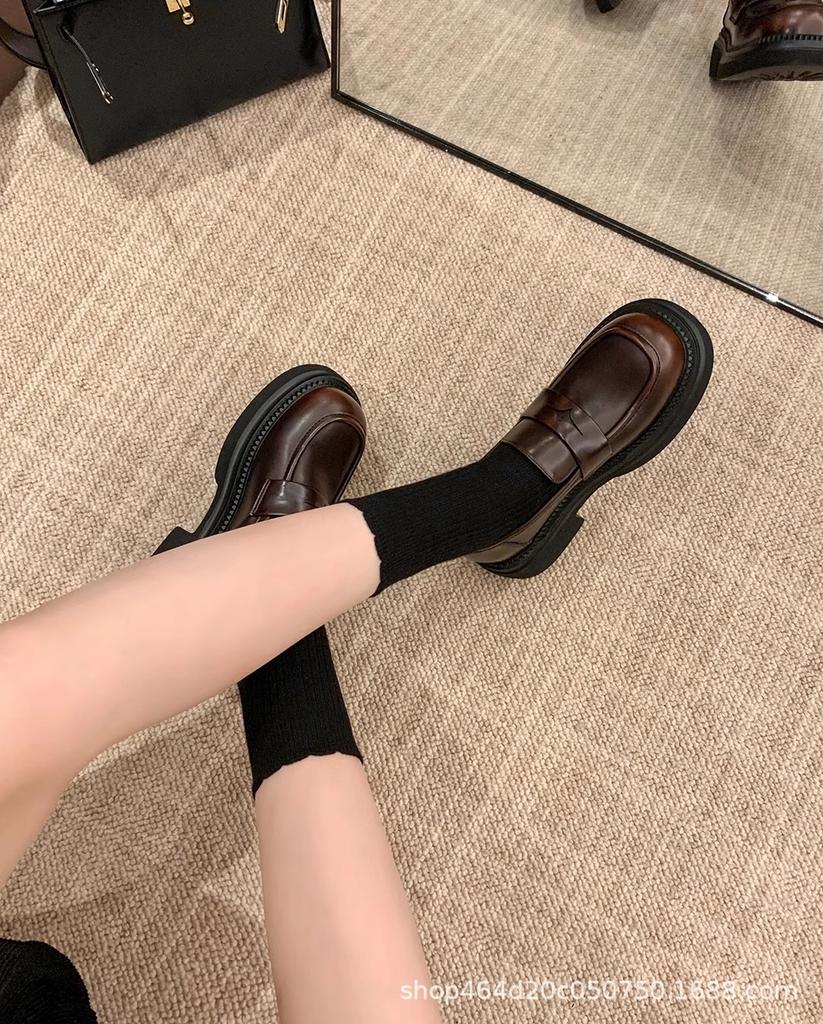 Туфли из коровьей кожи на толстой подошве с толстым каблуком, ленивые туфли, одинарные туфли, маленькие кожаные туфли