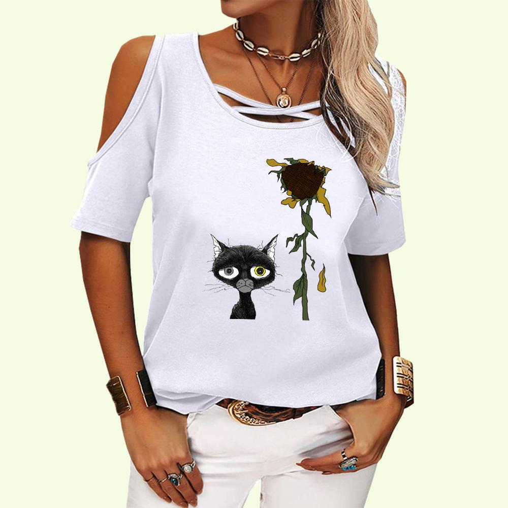 Женская модная футболка с открытыми плечами, женская повседневная футболка с круглым воротником, летний принт, короткий рукав, футболка — купить товар онлайн с бесплатной доставкой по всему миру!