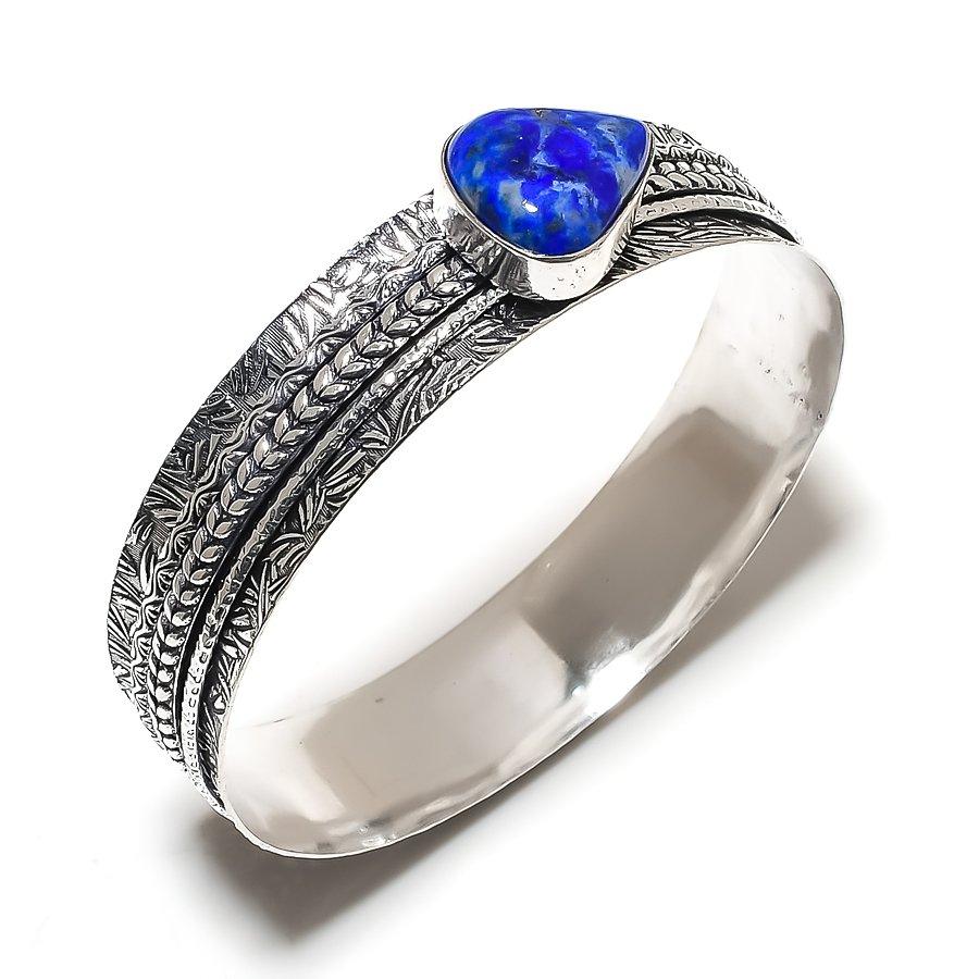 Natural Lapis Lazuli Gemstone Handmade 925 Sterling Silver Cuff Bangle 7.5" m6d26