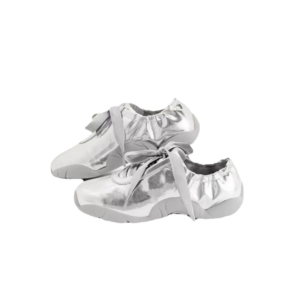 Балетки с серебряным ремешком 2025 года, новый спортивный стиль, на платформе, со шнуровкой, модная повседневная обувь с мягкой подошвой, одинарные туфли для женщин — купить товар онлайн с бесплатной доставкой до всему миру!