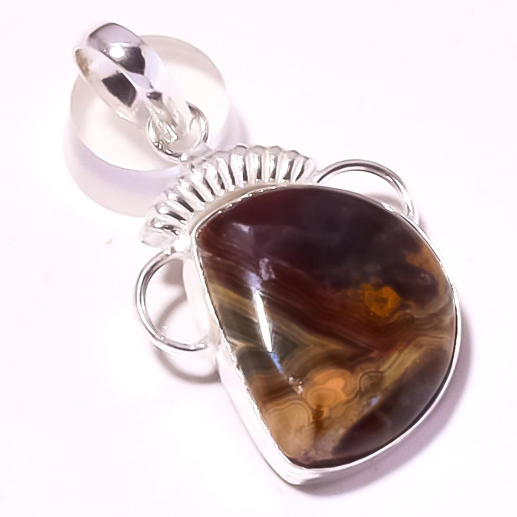 Подвеска из сумасшедшего кружевного агата с драгоценным камнем, ручная работа, антикварный дизайн, ювелирное изделие 1,9 дюйма d0Q45