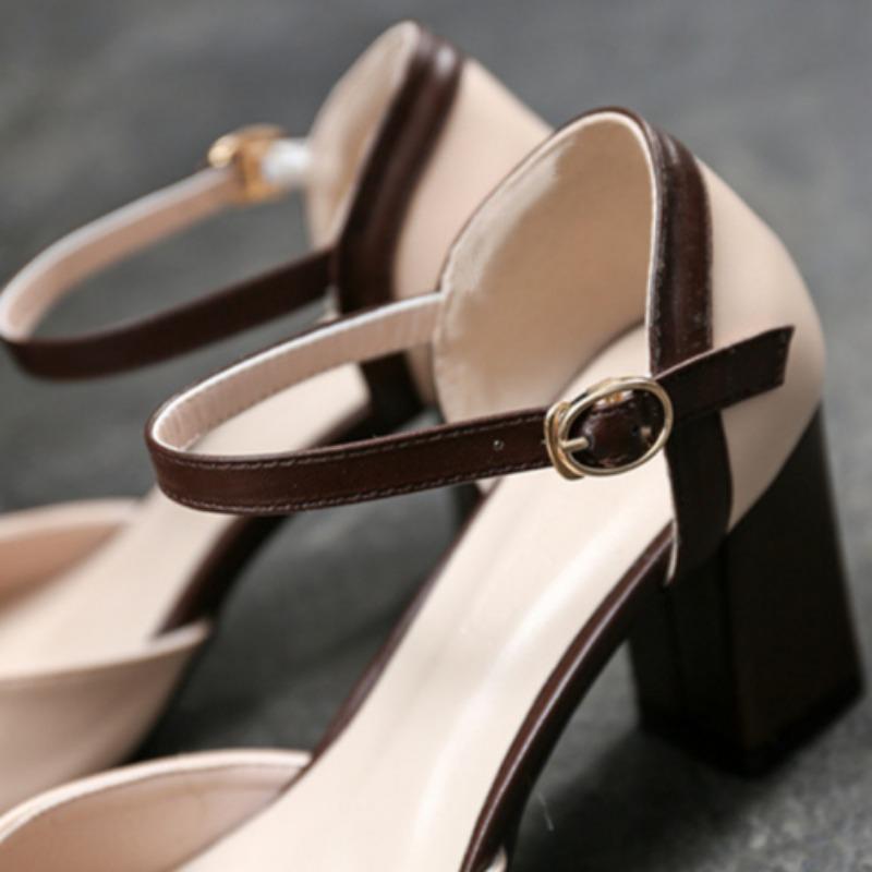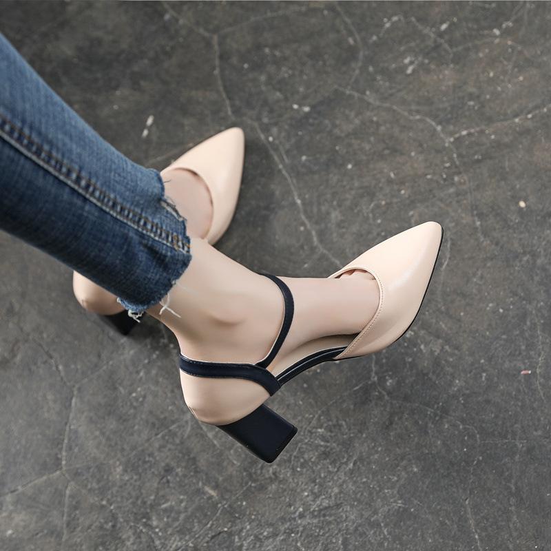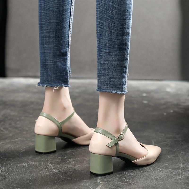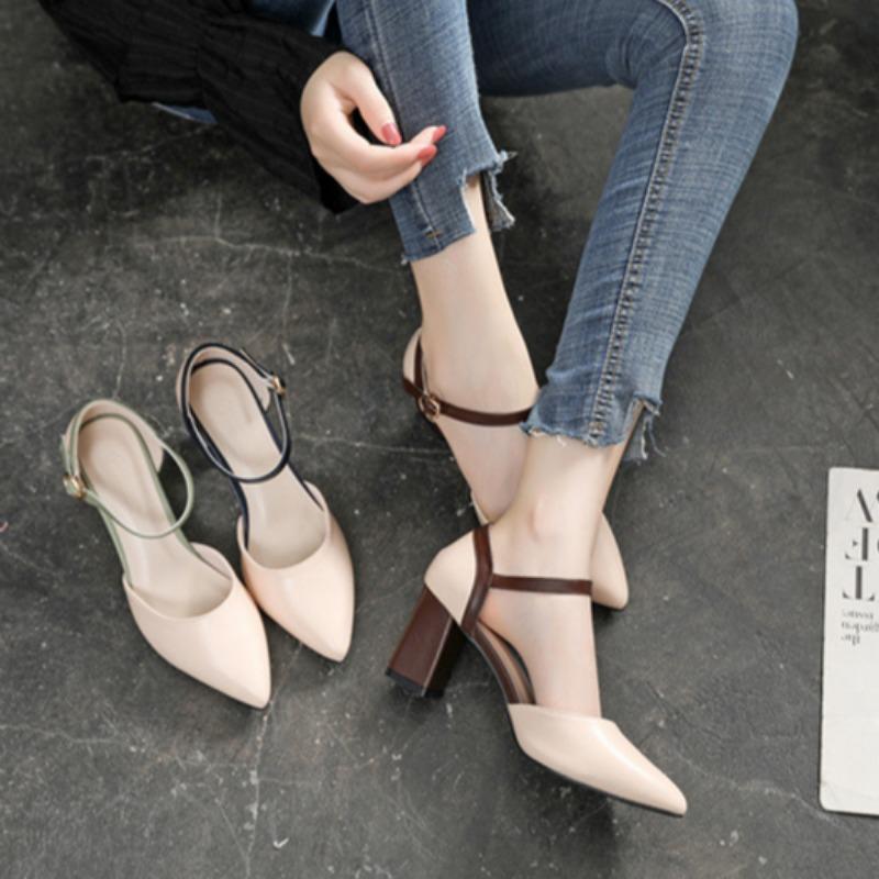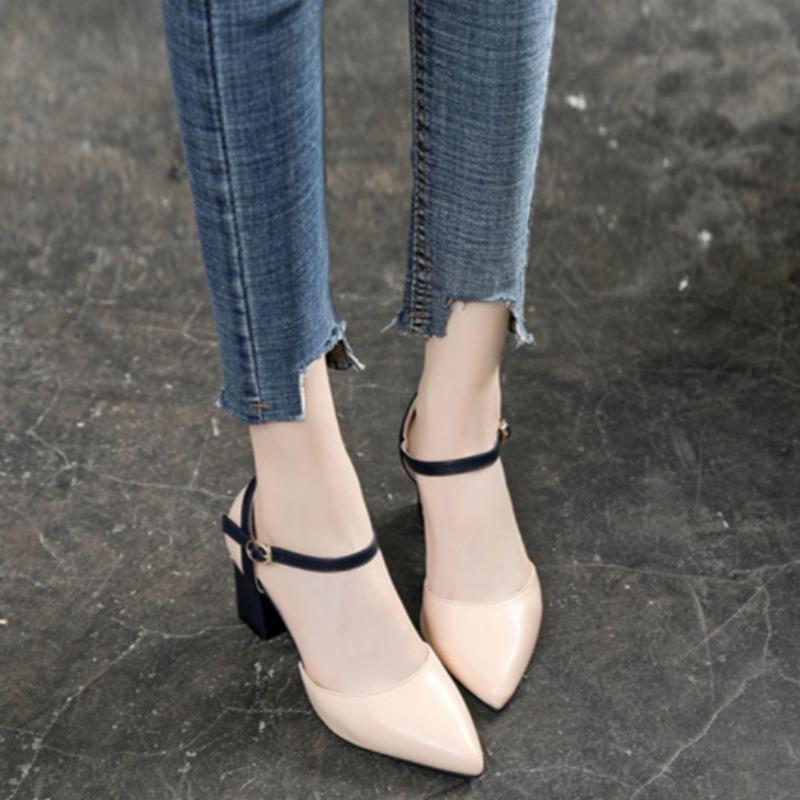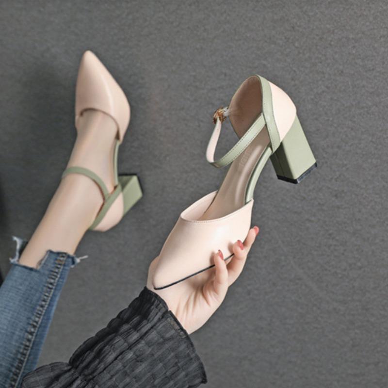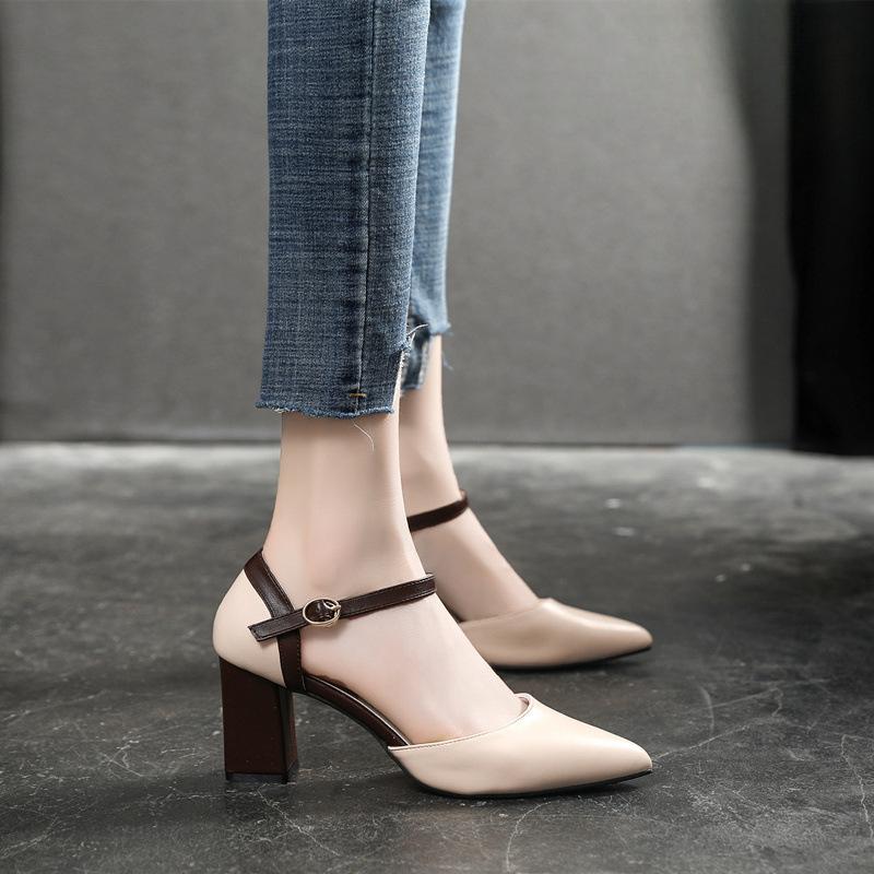 Остроконечные туфли на высоком каблуке, подходящие по цвету, с одной пряжкой, на толстом каблуке, одинарные туфли, подходящие по цвету, модные сандалии