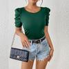 Женская футболка с круглым вырезом, плиссированная, с коротким рукавом, бантом