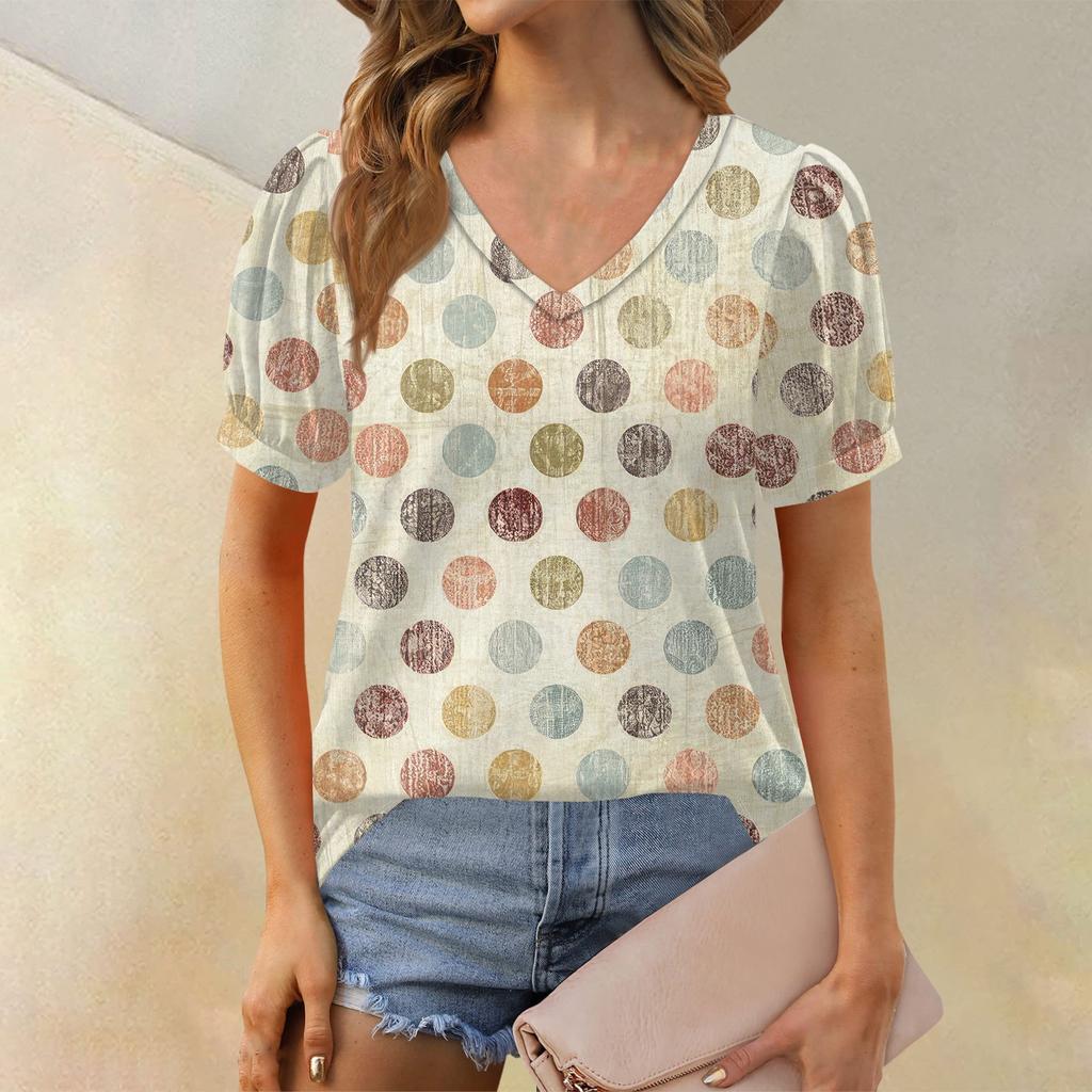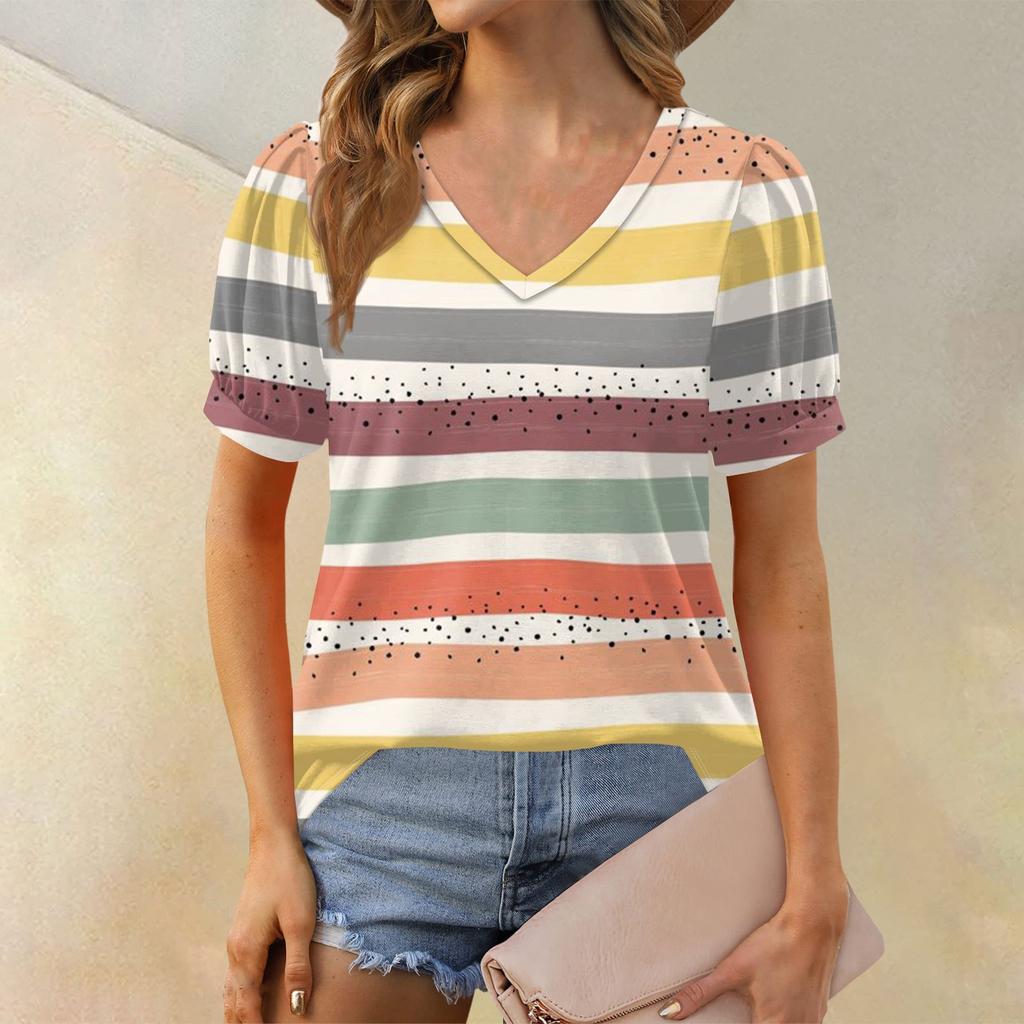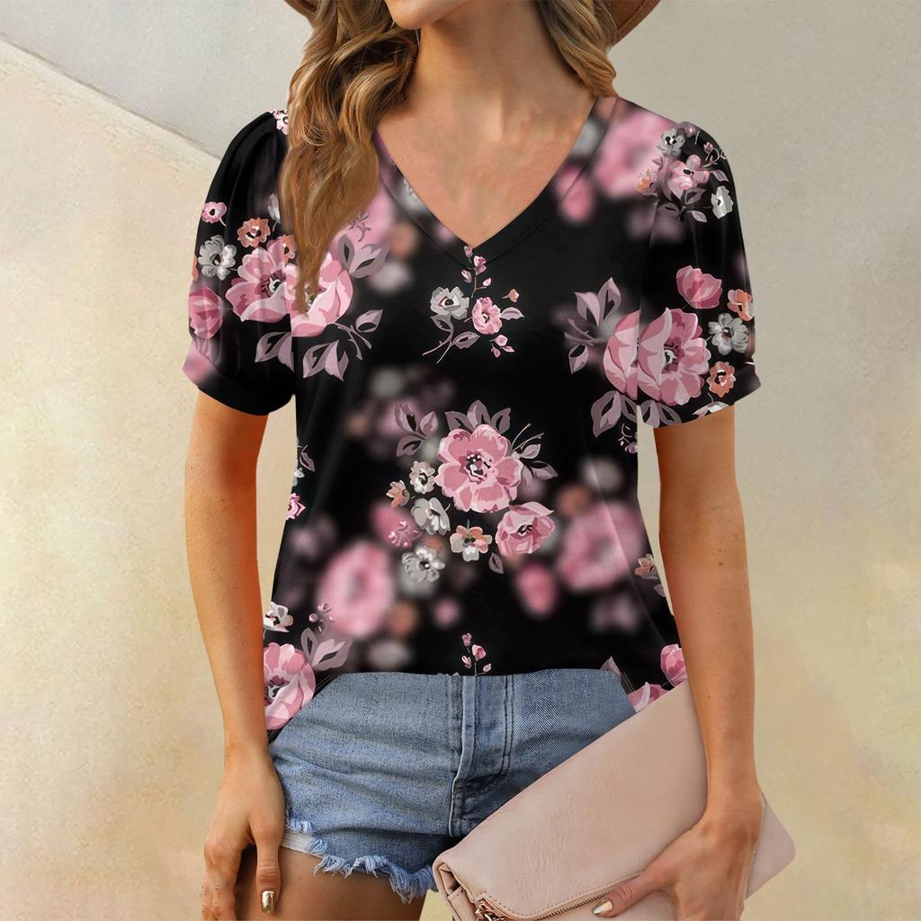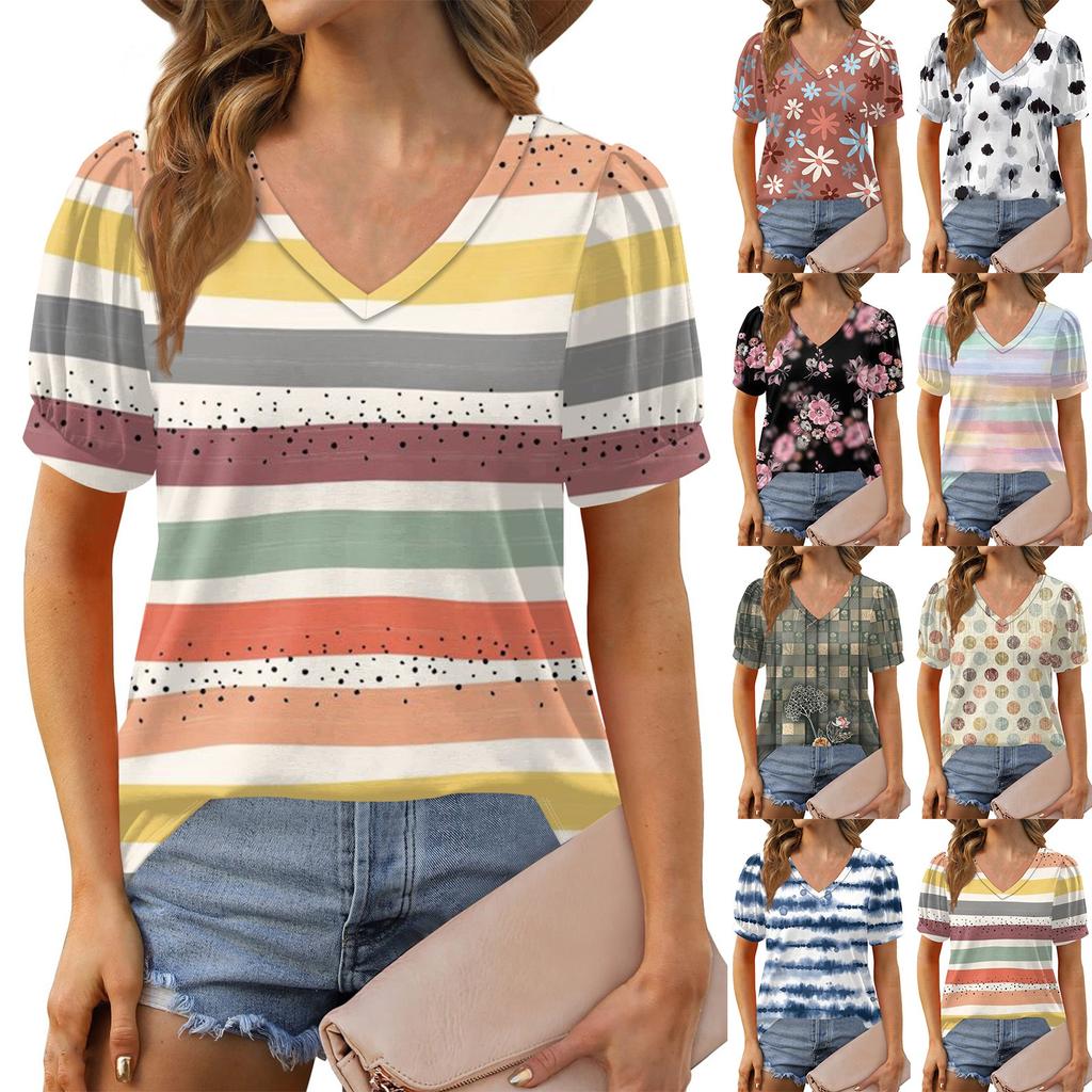 Женские летние топы с коротким рукавом и V-образным вырезом, свободные повседневные футболки