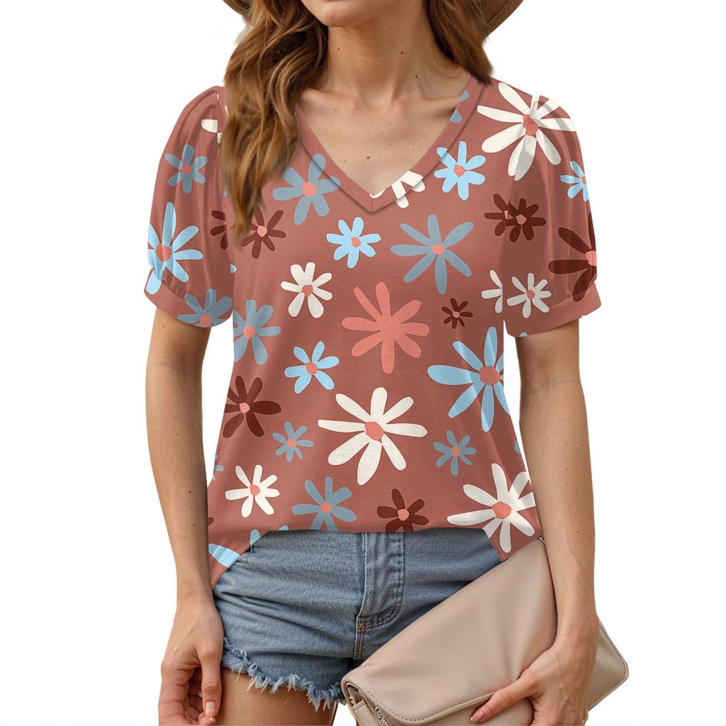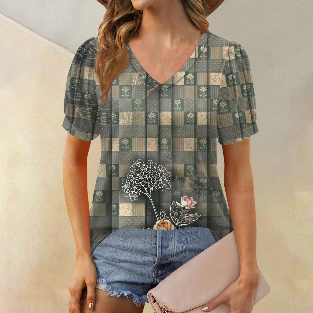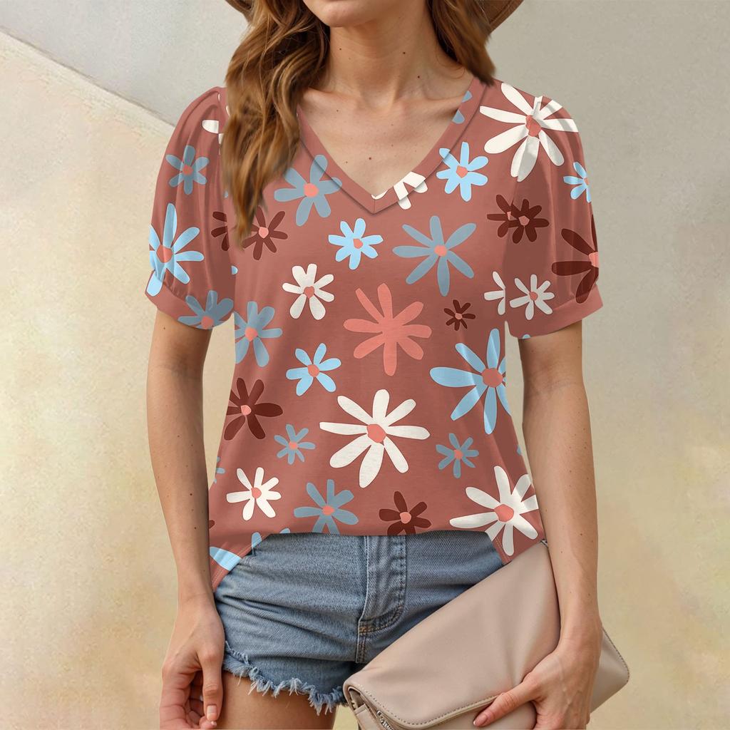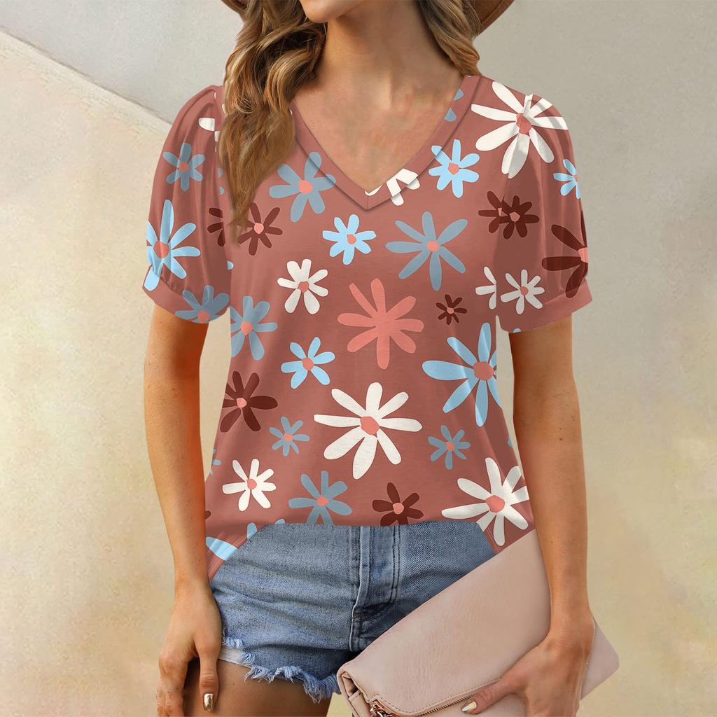Женские летние топы с коротким рукавом и V-образным вырезом, свободные повседневные футболки