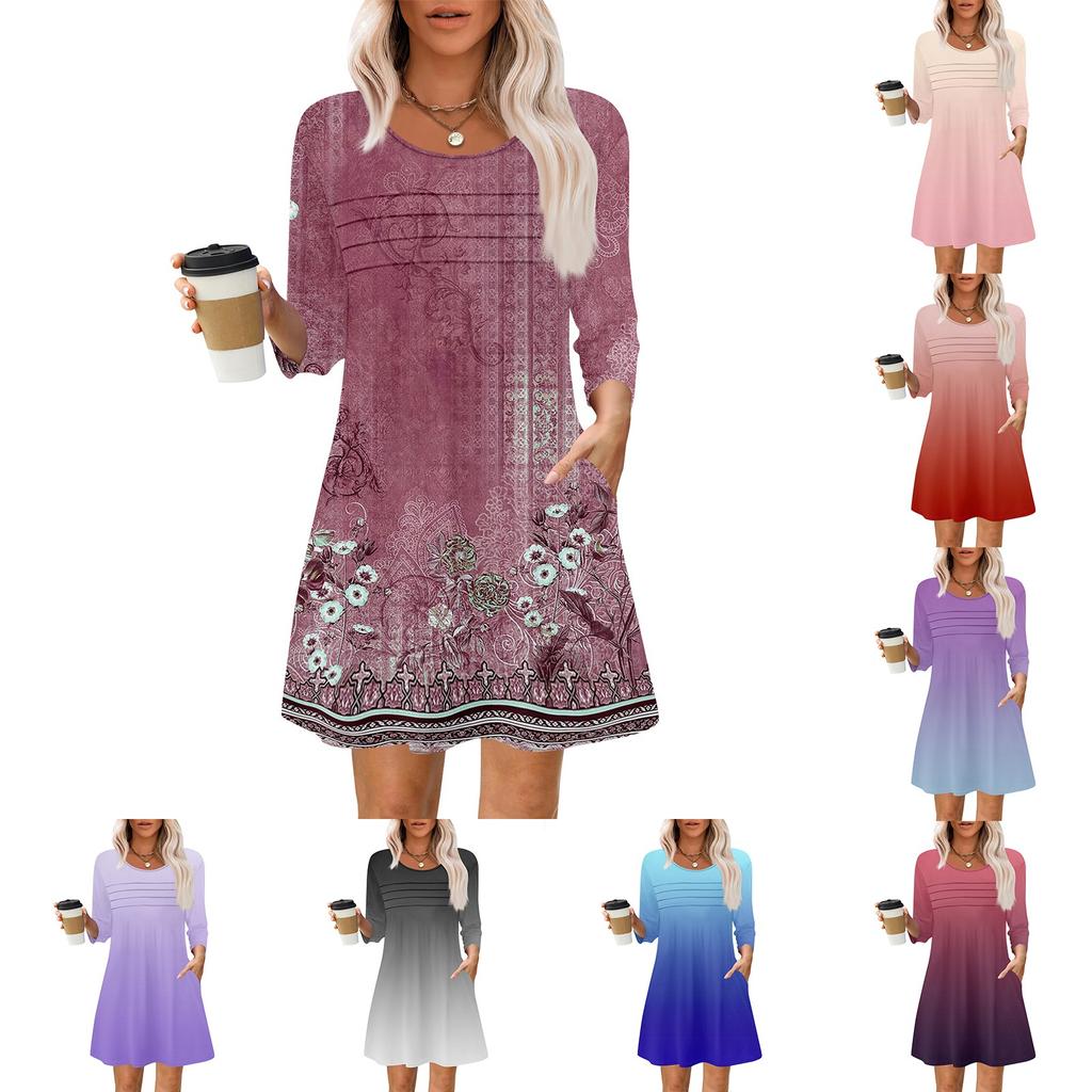 Женские летние повседневные лепестковые узкие полосатые платья с длинным рукавом и плиссировкой с цветочным принтом