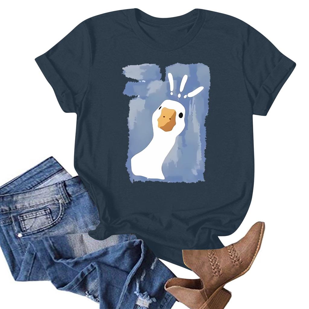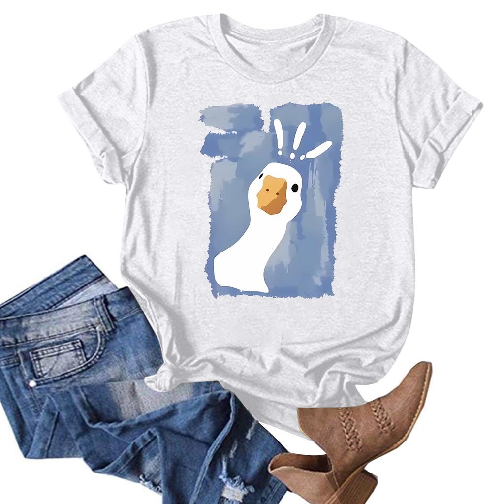 Женская модная повседневная летняя удобная блузка с круглым вырезом и коротким рукавом с принтом