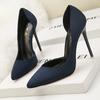 Стильные и простые женские туфли на тонком каблуке с высоким каблуком, замшевые, тонкие, с неглубоким носком и заостренным носком по бокам