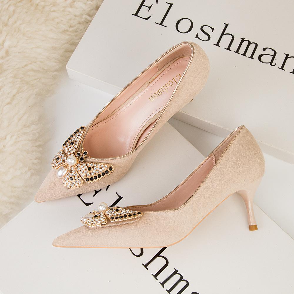 Модные милые туфли на высоком каблуке, женские туфли на шпильках, с заостренным носком и бантом из страз, женские одинарные туфли