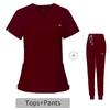 Комплект униформы медсестры больницы, полиэстеровое волокно, эластичный хирургический халат с V-образным вырезом, комплект униформы медсестры с короткими рукавами