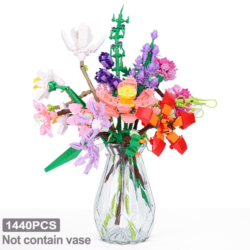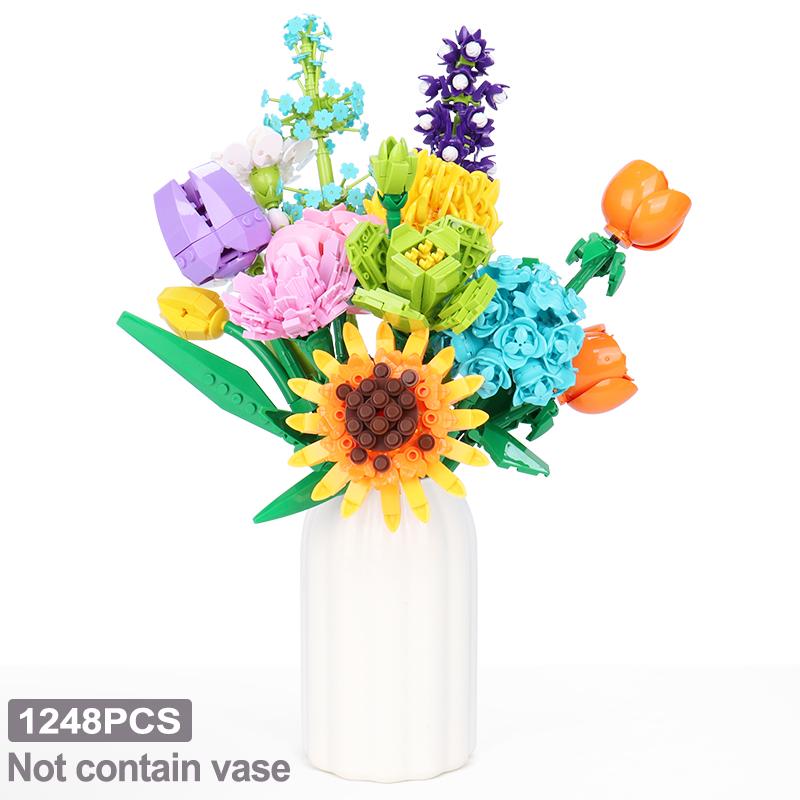 Вечный цветок Романтические розы Букет полевых цветов Кирпичные блоки Искусственный цветок Конструктор Блок Игрушки Детский подарок Строительный блок