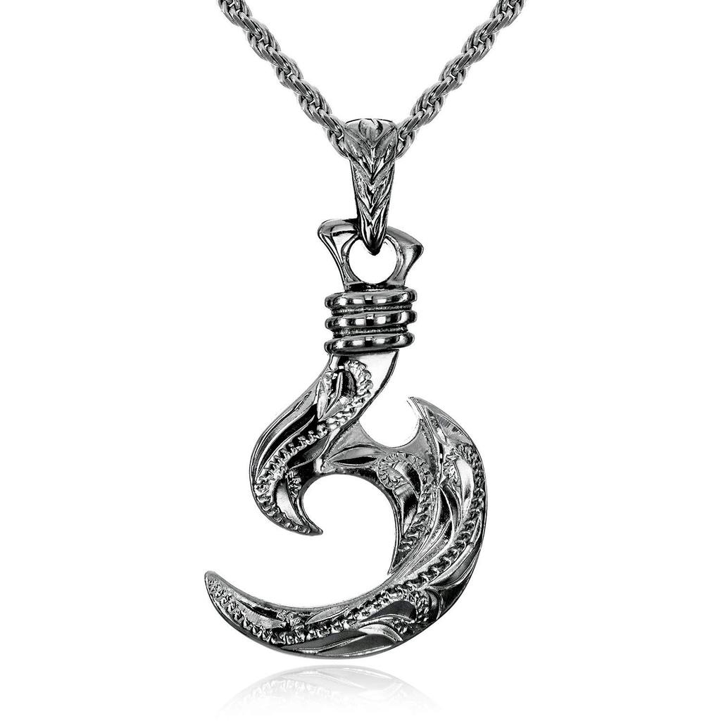 Гавайские украшения ожерелье с подвеской в виде рыболовного крючка, серебро 925 пробы, цепь 45 см [Leilani] для мужчин (Веревка включена)