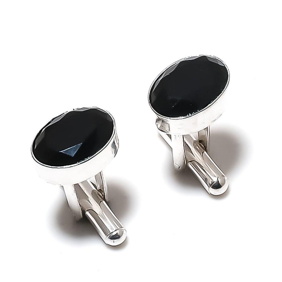 Запонки из серебра 925 пробы с натуральным черным камнем шпинель a8K81