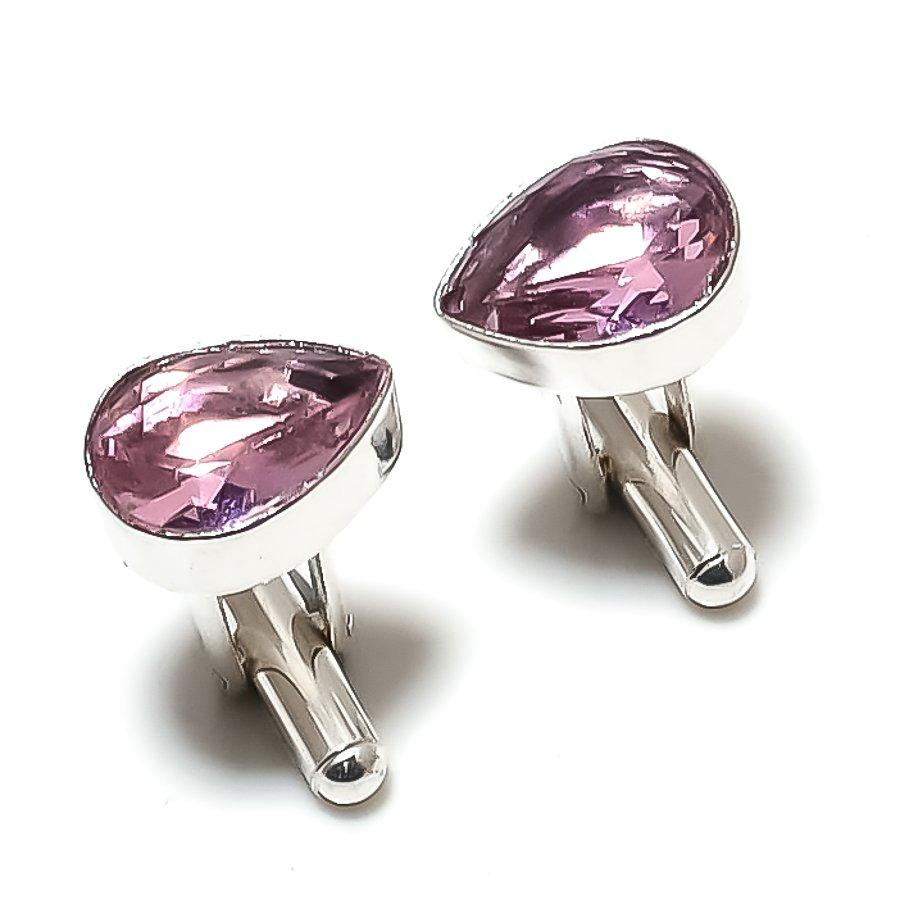 Запонки из серебра 925 пробы с натуральным розовым кунцитом ручной работы F9L49 — купить товар онлайн с бесплатной доставкой до всему миру!