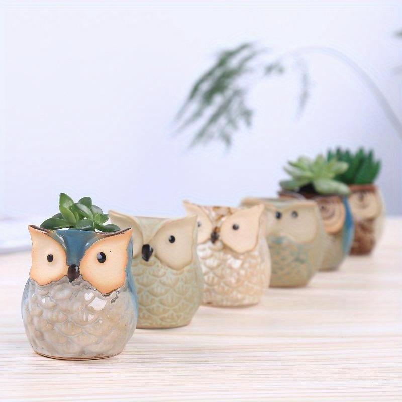 1 шт., индивидуальный цветочный горшок для суккулентов, сова, животное, маленький цветочный горшок, креативный, милый, керамический горшок с отверстием для большого пальца