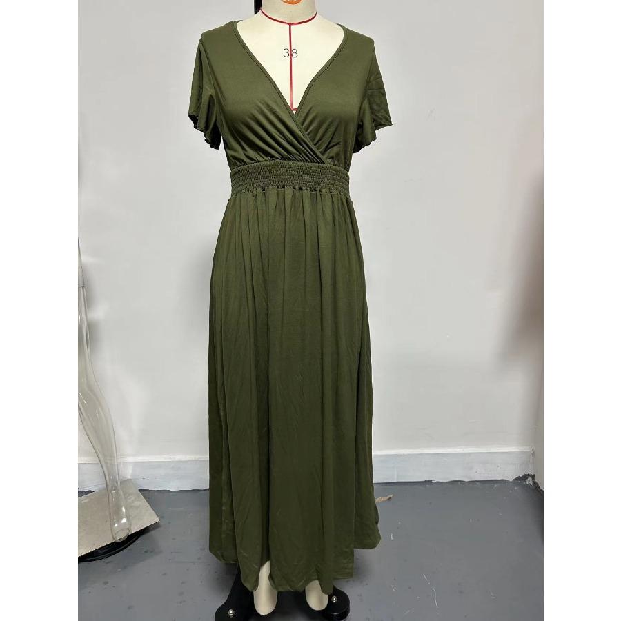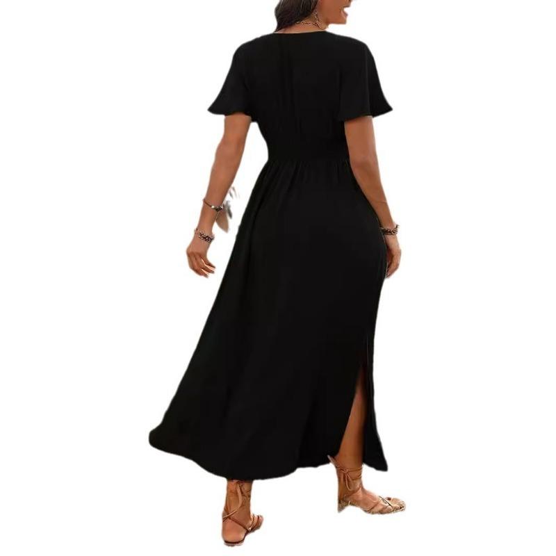 Летние однотонные вечерние платья с V-образным вырезом, расклешенными рукавами и эластичным поясом для утягивающего эффекта