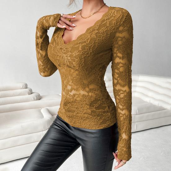 Универсальный дизайн с V-образным вырезом: Ощутите стиль и изысканность с помощью однотонных женских рубашек с V-образным вырезом и длинными рукавами, которые идеально подойдут для любого случая.
