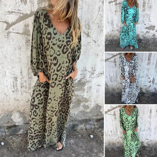 Украсьте свой гардероб этим шикарным женским макси-платьем — универсальной вещью, подходящей для любого случая.. Это платье, изготовленное из высококачественного полиэфирного волокна, может похвастаться стильным леопардовым принтом и удобным свободным кроем.. V-образный вырез и длинная юбка добавляют элегантности, что делает ее идеальной для офиса, повседневных прогулок, отдыха, походов по магазинам, отпуска или вечеринок..