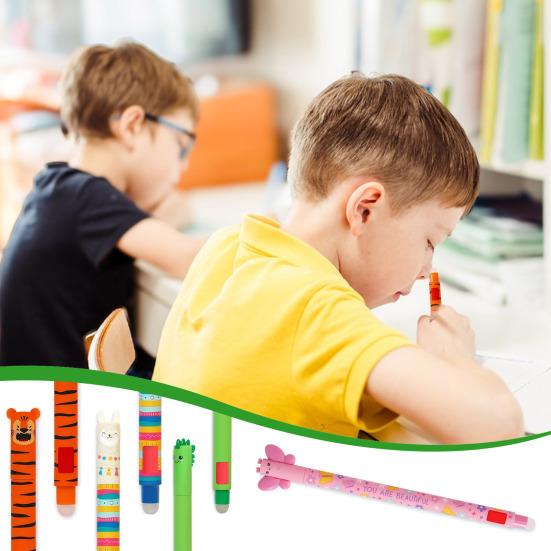 В этот набор входят 4 ручки с забавным дизайном.: Динозавр (зеленые чернила), ягненок (синие чернила), тигр (оранжевые чернила), и бабочка (розовые чернила). Улучшите свои записи с помощью стираемой ручки — приобретите ее сегодня!