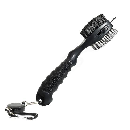 Удобство — это главное преимущество выдвижной конструкции этой щетки.. Прочный алюминиевый крючок и двухфутовый трос позволяют легко прикрепить его к сумке для гольфа и получить быстрый доступ.. После использования просто уберите очиститель, чтобы надежно закрепить его и не поцарапать сумку.. Двойная конструкция щетки включает нейлоновые щетинки для бережного удаления пыли и проволочные щетинки для удаления сильных загрязнений с поверхностей клюшек.