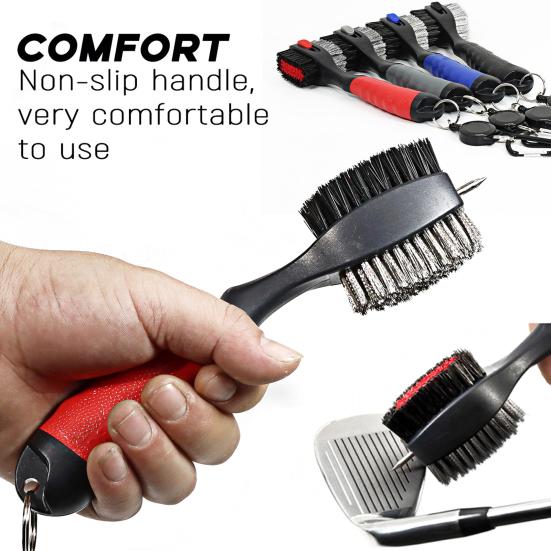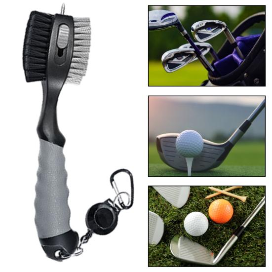 Сильная очистка: Щетка для гольф-клюшек имеет двойную конструкцию. Нейлоновая щетина используется для удаления пыли и стружек травы с поверхности железных прутьев или дерева.. Проволочные щетинки используются для удаления стойкой грязи и пыли с поверхности железа.