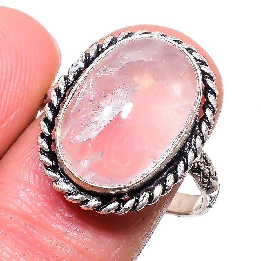 Кольцо из серебра 925 пробы с натуральным розовым кварцем, размер 9 F8f66