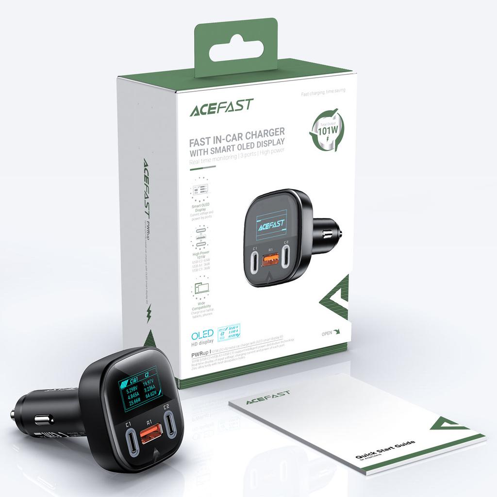 Acefast 101W Car Charger 2x USB-C/USB, PPS, Power Delivery, Quick Charge 4.0, AFC, FCP Black (B5)