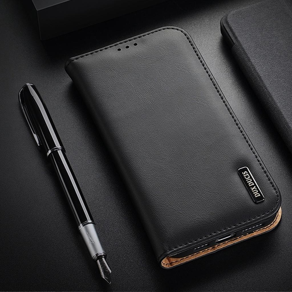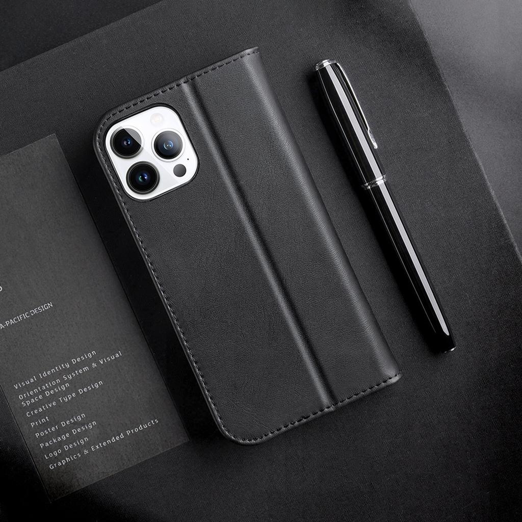Dux Ducis Genuine Leather Wallet Case Flip Cover for iPhone 14 Pro - Red