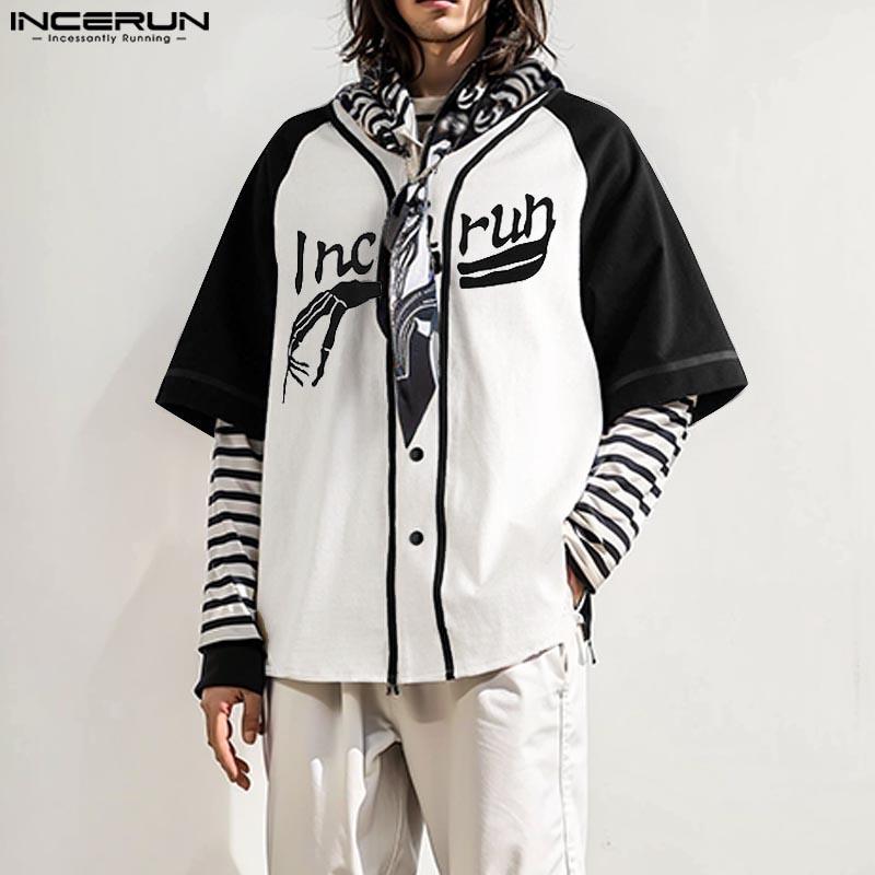 INCERUN Мужские повседневные летние футболки без воротника с коротким рукавом и буквенным принтом