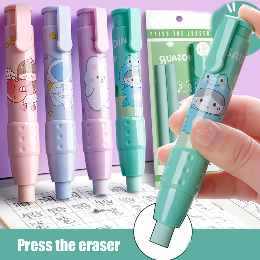 Ластики в виде ручки, выдвижные механические ластики со сменными стержнями, школьные канцелярские принадлежности, мультяшный толкаемый ластик
