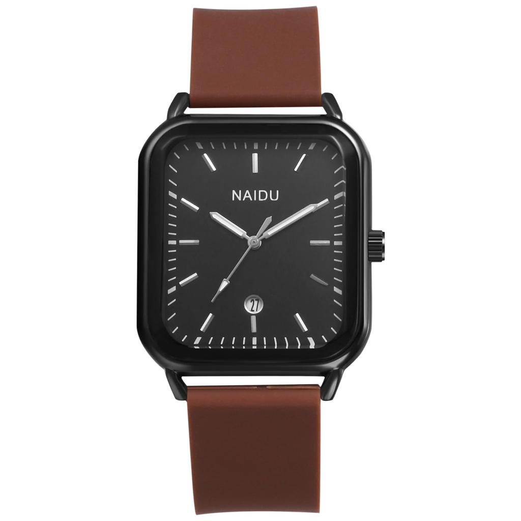 Квадратные часы с силиконовым календарем и аналоговым резиновым ремешком, кварцевые часы, повседневные, стильные, коричневые, модные, на день рождения, годовщину, Рождество, бойфренд