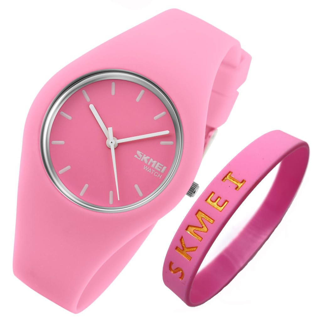 SKMEI часы женские силиконовые милые студенческие спортивные простые школьные: Наручные часы Женские повседневные часы, часы для молодых женщин, модный круглый корпус, мягкий и прочный силиконовый ремешок с застежкой-пряжкой, легко надевать и снимать.