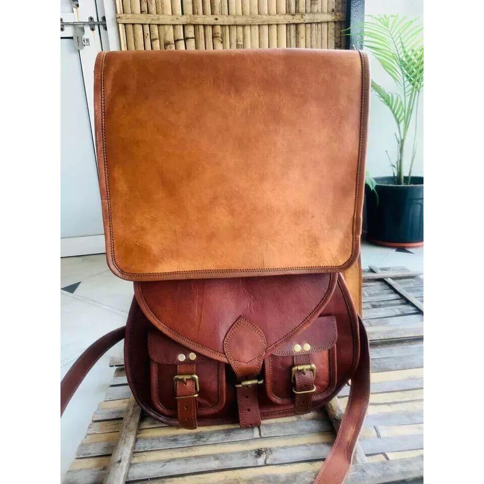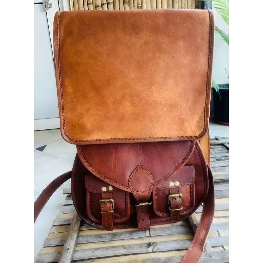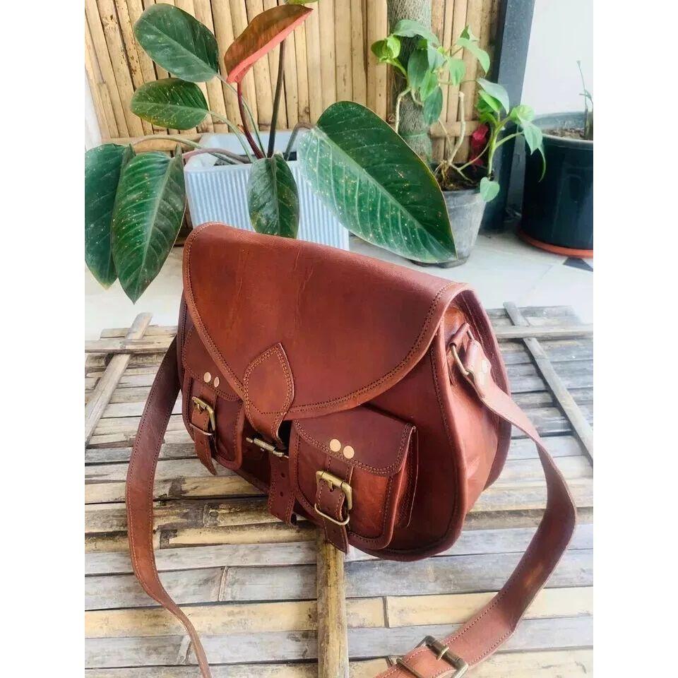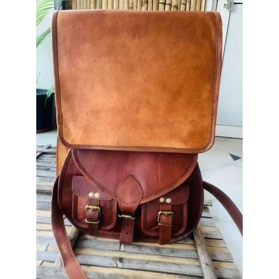 Сумка-мессенджер из козьей кожи, коричневая сумка-мессенджер ручной работы из кожи. ( Бесплатная подарочная сумка-слинг коричневого цвета размером 9 x 7 x 3 дюйма )