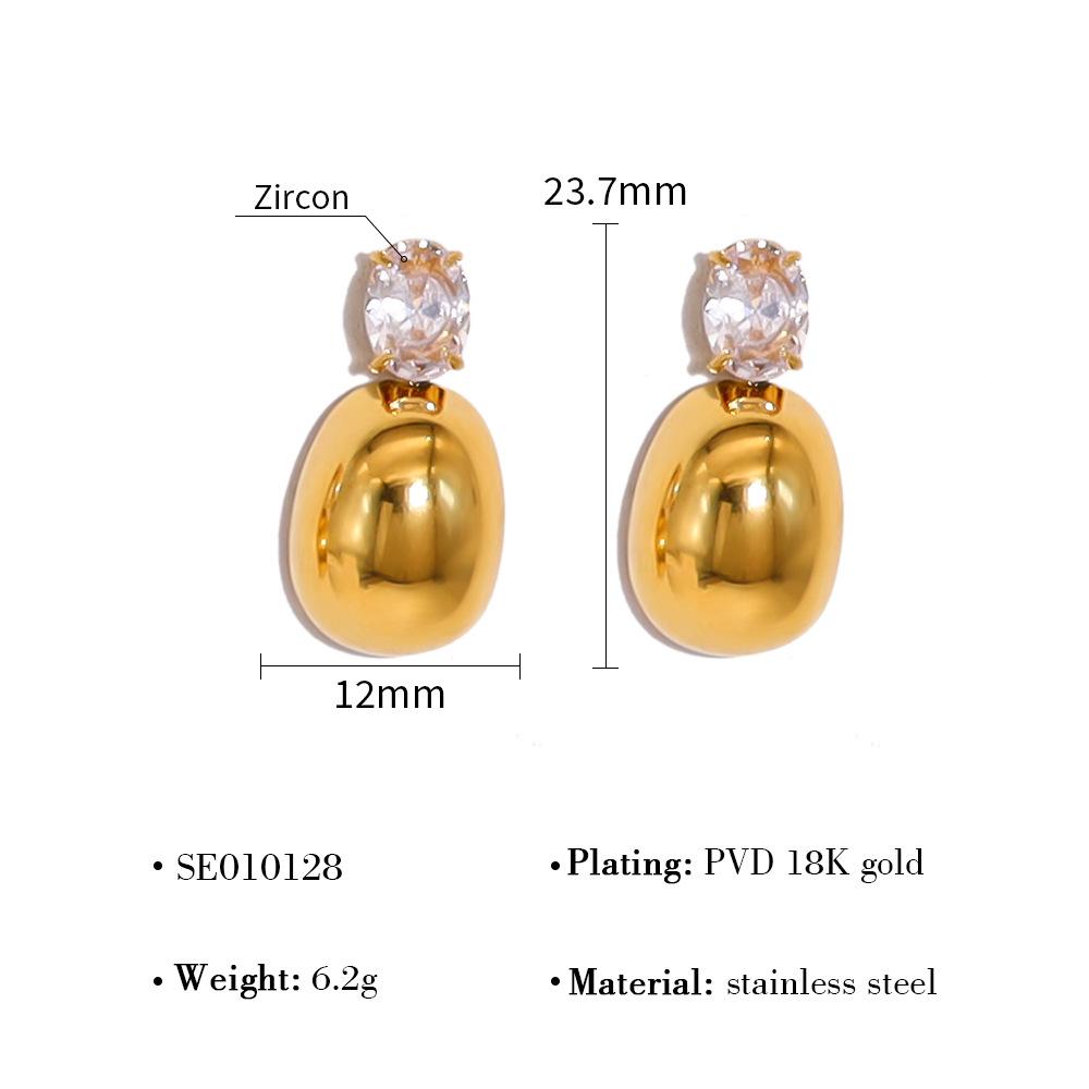 Серьги-капли из нержавеющей стали с объемными гладкими каплями воды, длинные серьги-гвоздики из титановой стали с инкрустацией из циркония во французском стиле для женщин