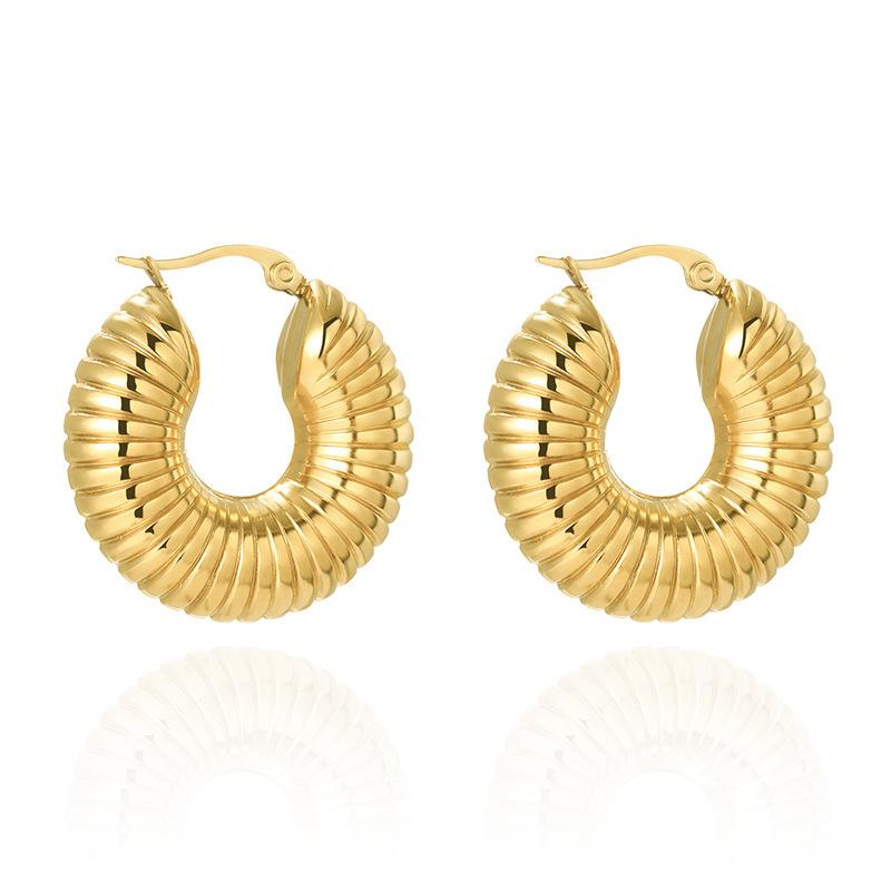 Модные универсальные женские серьги из нержавеющей стали с пряжкой, простые полые круглые серьги из титановой стали с резьбой, средневековые серьги