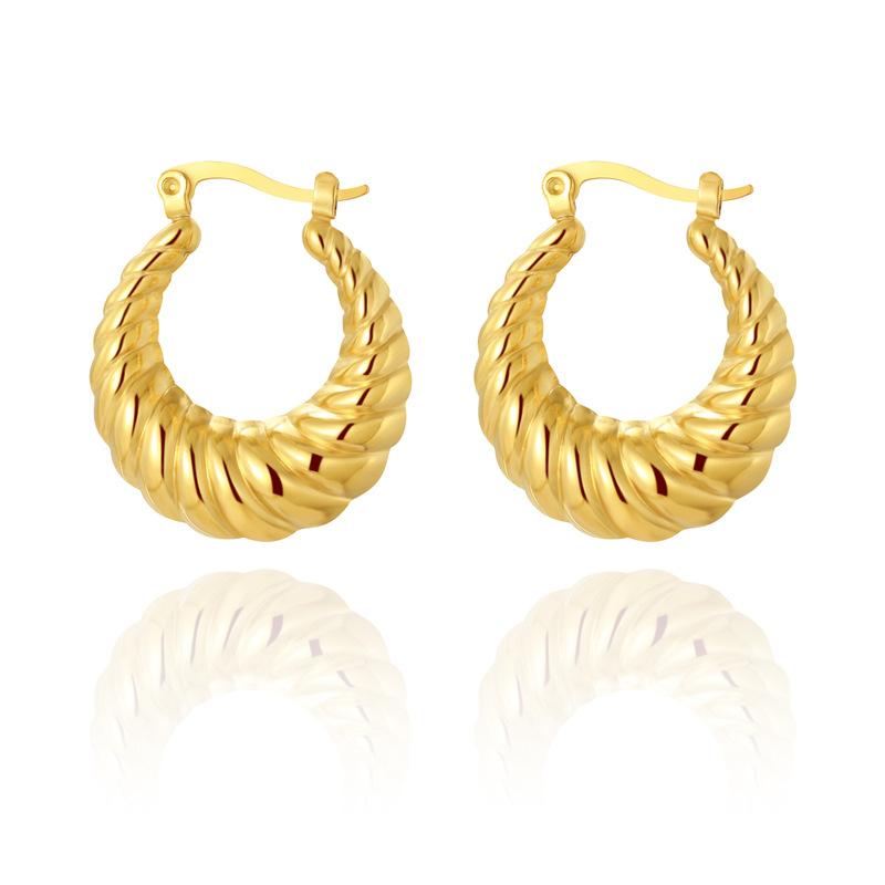 Серьги-пряжки из титановой стали с косой нитью в форме полумесяца, позолоченные, из настоящего золота, в стиле ретро, из нержавеющей стали, женские серьги-гвоздики