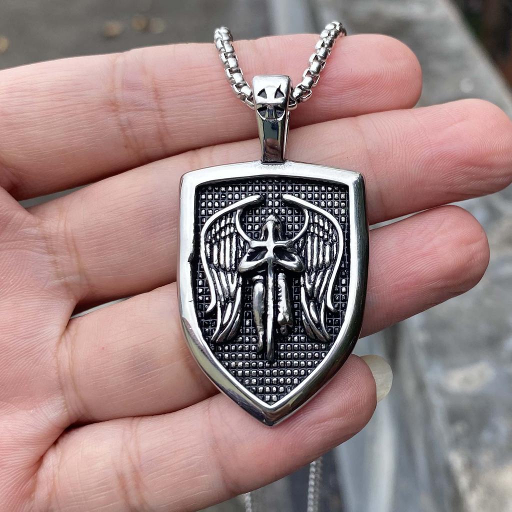 Ретро мужская титановая стальная цепочка, властная стальная подвеска, крылья ангела, щит, нержавеющая сталь, подвеска, цепочка для свитера