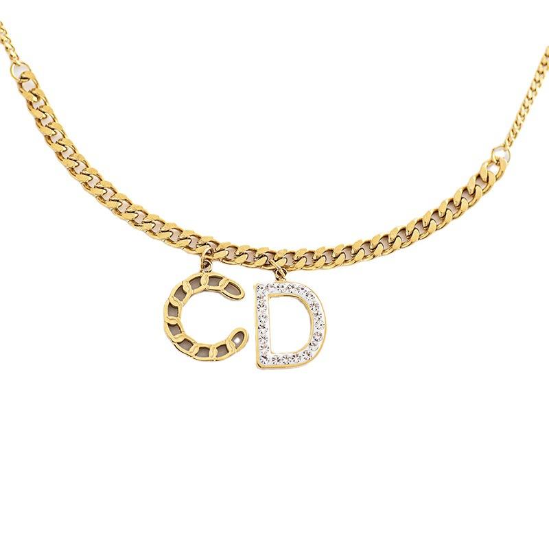 Ожерелье из титановой стали с буквой Cd Zircon не выцветает, универсальная модная цепочка на ключицу из нержавеющей стали для женщин