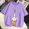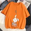Футболка с изображением кролика из хлопка для женщин 2025 года, летние новые белые трендовые женские свободные топы с короткими рукавами