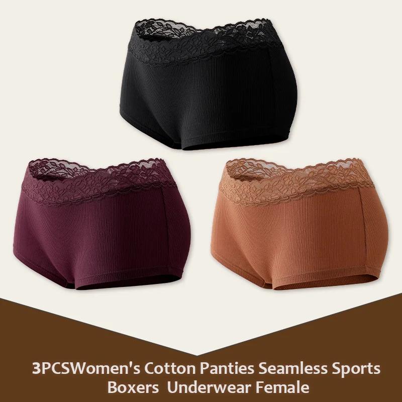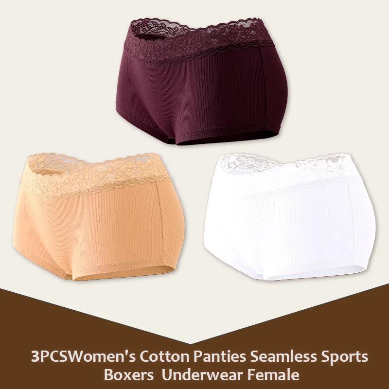 3 шт. женские кружевные трусики-боксеры хлопковые бесшовные трусы-боксеры женские однотонные трусы уютное нижнее белье интимные трусы S-XL