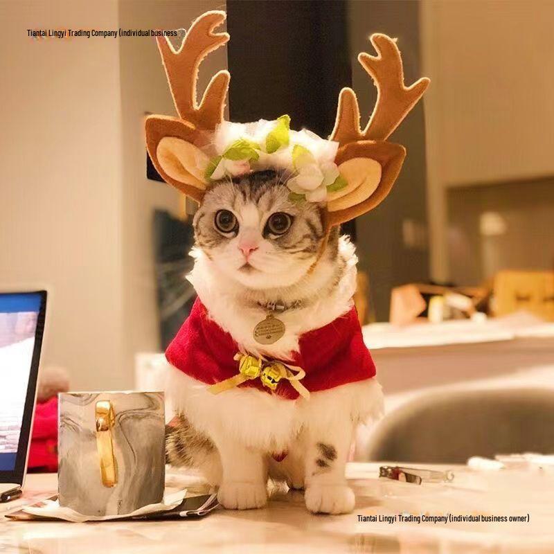 Рождественский комплект из накидки и шапки для питомца: Теплая праздничная одежда для кошек и маленьких собак
