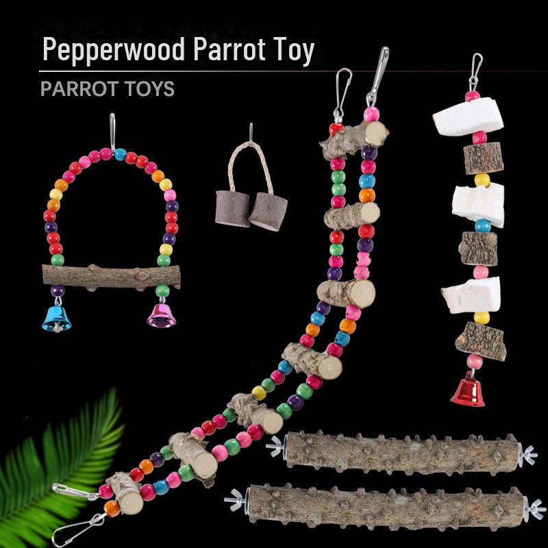Набор жевательных игрушек «Попугай»: Лестница из перцового дерева, качели, подставка-палка, коренная нить из кости каракатицы