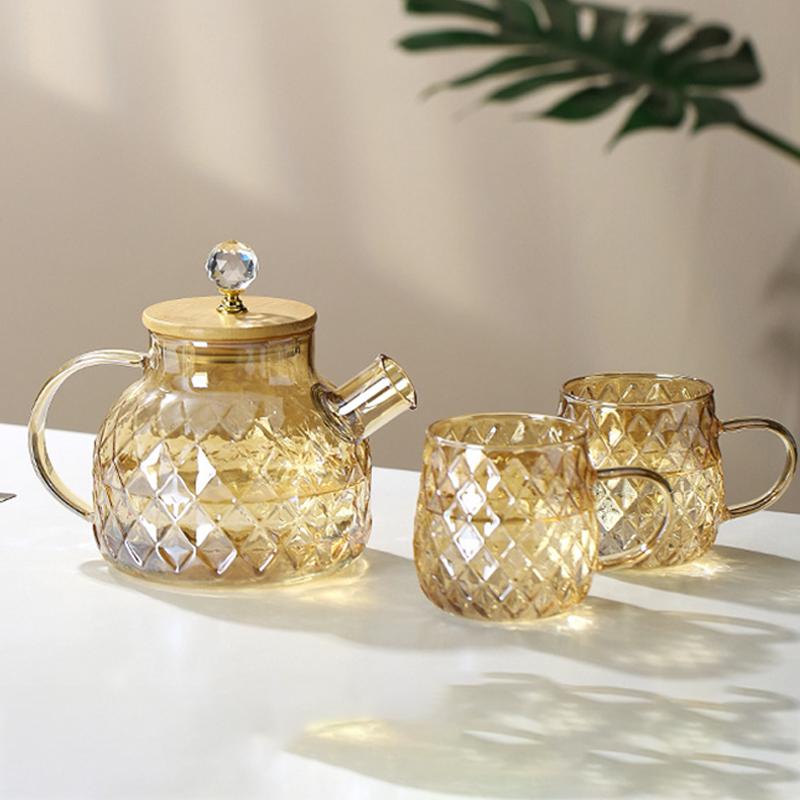 Стеклянный чайник с бамбуковой крышкой и съемным фильтром-носиком, заварной чайник для рассыпного листового чая и фруктового чая 1/15/1,8 л