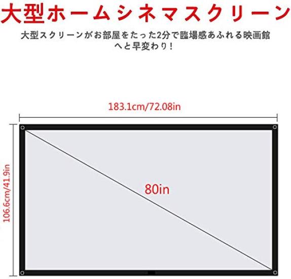 Проекционный экран с поддержкой 4K для использования в помещении и на улице, до 80 дюймов, 16:Угол обзора 9°, угол обзора 160°, противоморщинная обработка, легко чистить