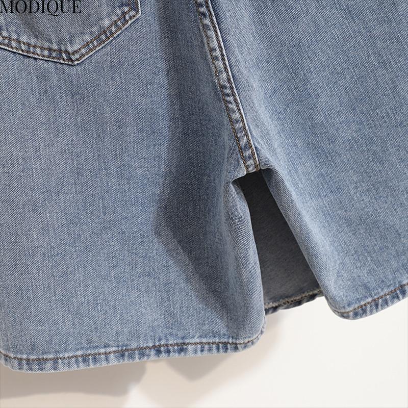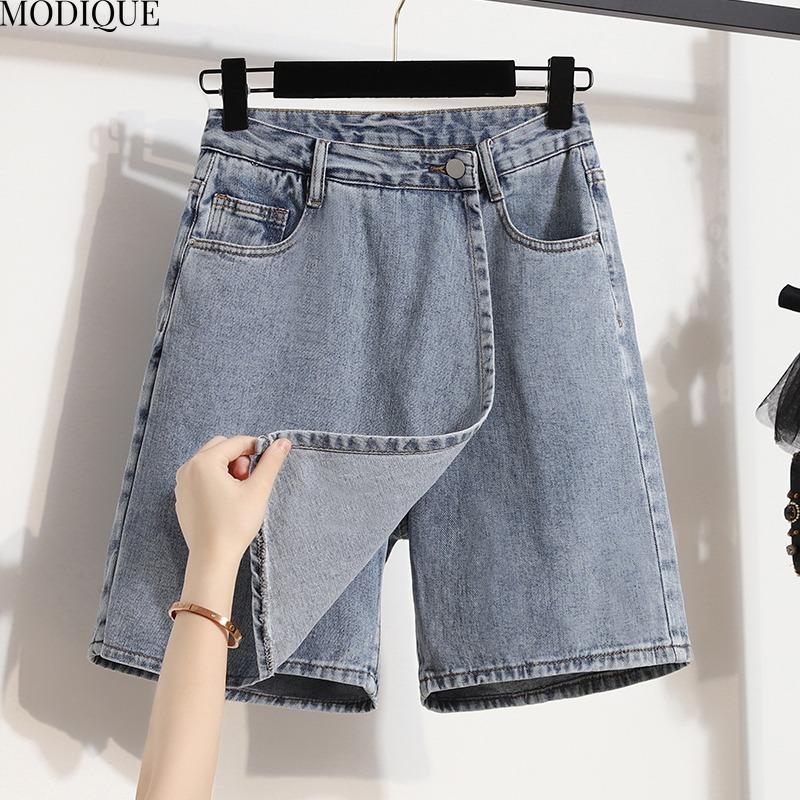 MODIQUE 2025 Новые летние женские брюки больших размеров с эластичной талией и широкими штанинами, шорты, джинсы, свободные повседневные базовые брюки с высокой талией