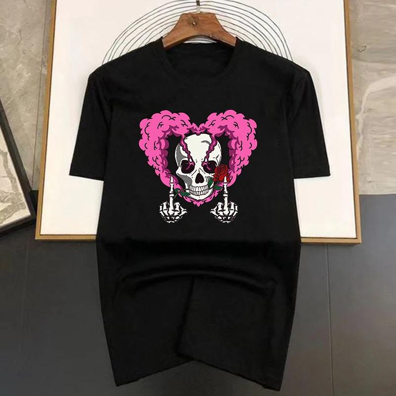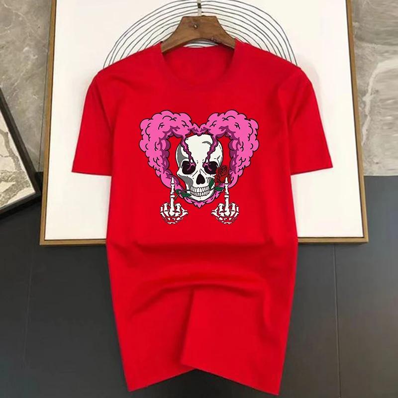 Футболка с принтом в виде сердца и скелета класса люкс для мужчин, летняя винтажная футболка унисекс большого размера Y2k, топы с коротким рукавом для мужчин