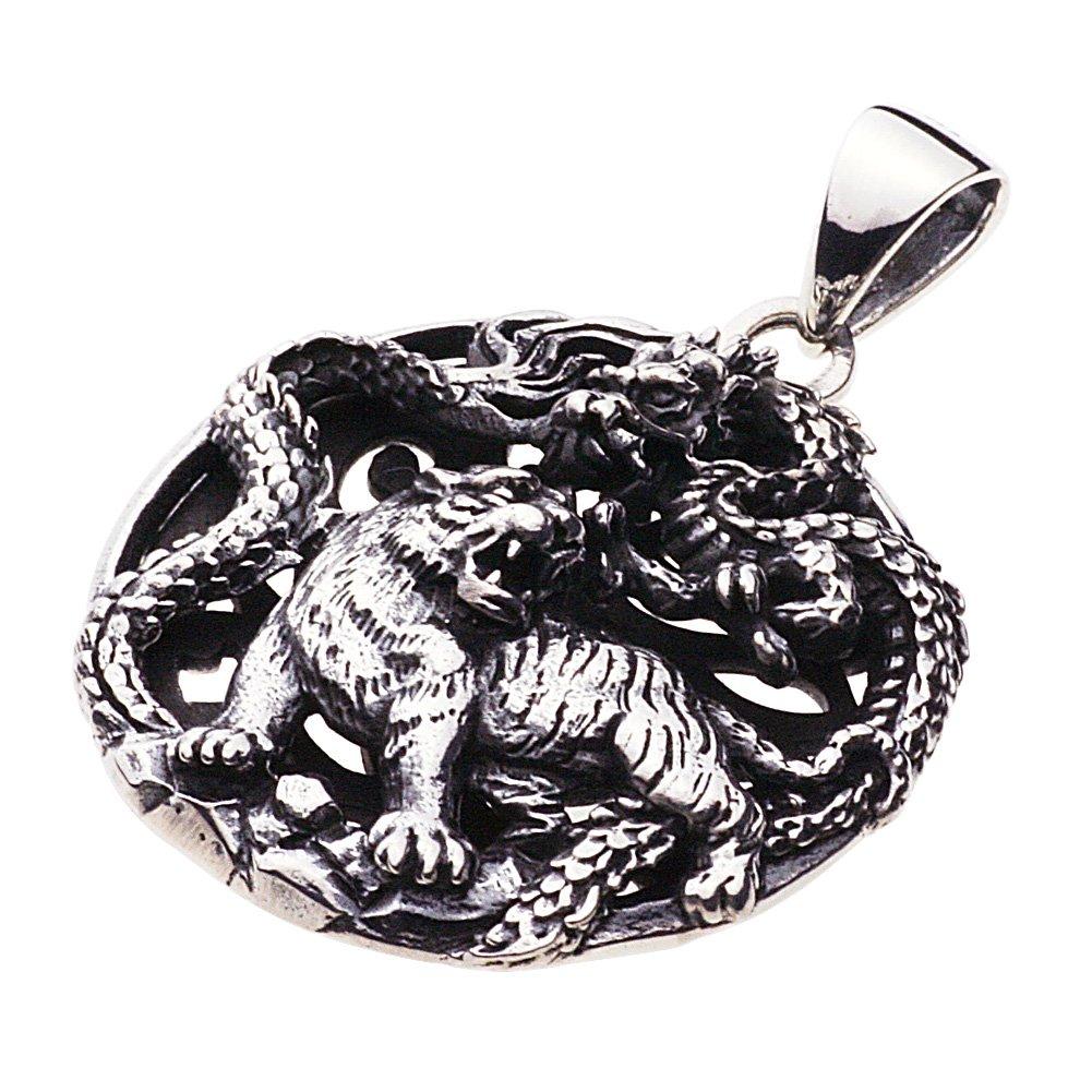 Японский узор дракон и тигр кулон серебро p0216 [Cenote] [925 аксессуары]
