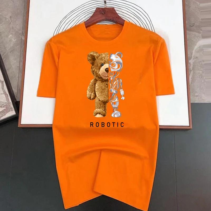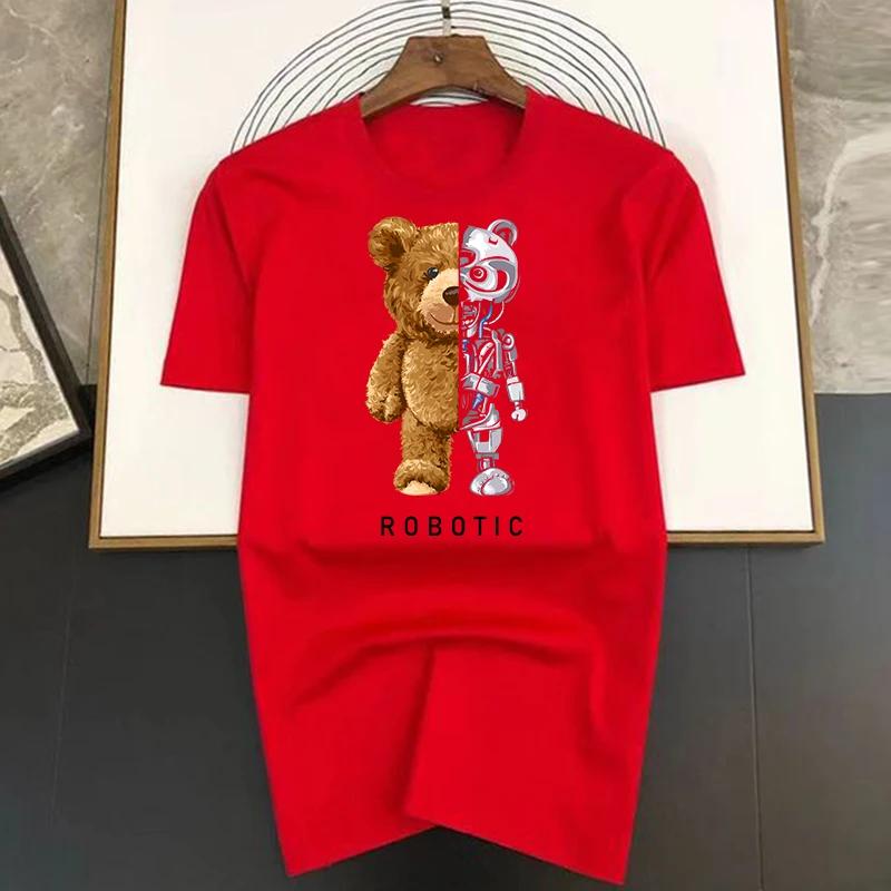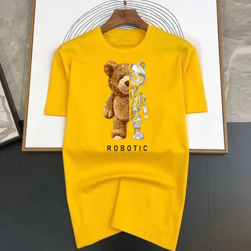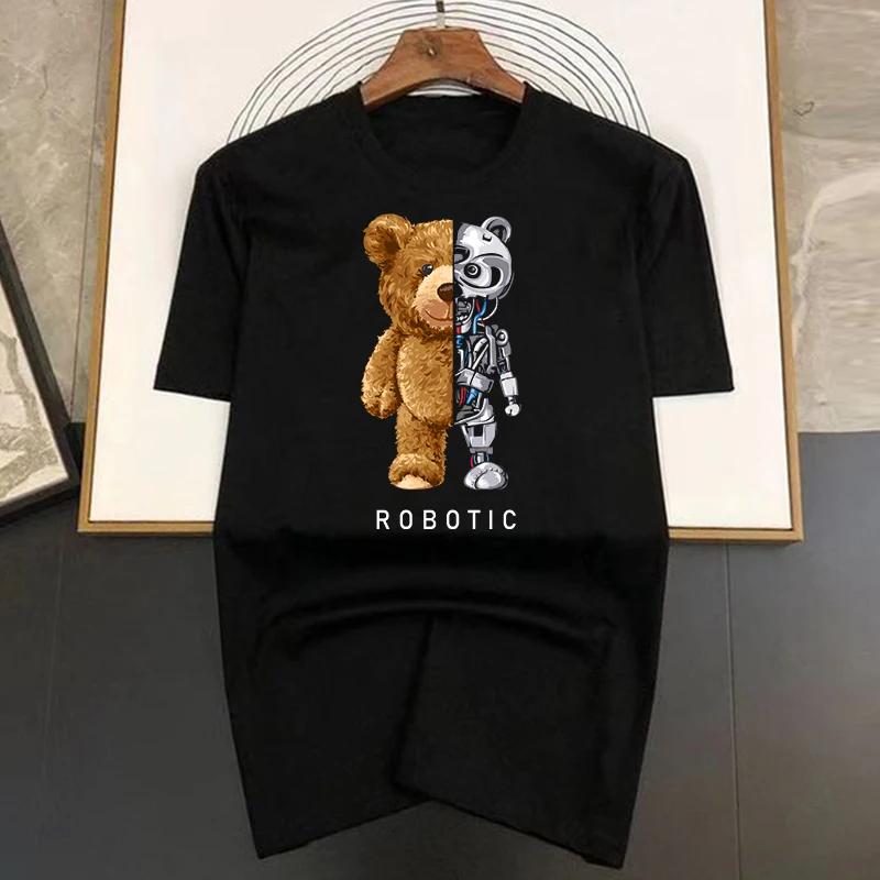 Летняя футболка с принтом робота-медведя в стиле харадзюку, забавная футболка для мужчин, футболка с коротким рукавом, повседневная белая футболка, женская модная одежда
