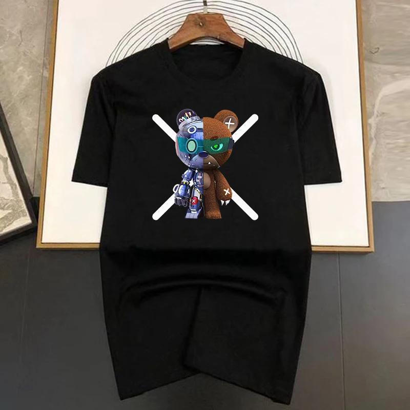 Высококачественная хлопковая футболка с принтом горячего робота-медведя, роскошная футболка для мужчин, новые брендовые модные крутые дизайнерские футболки, повседневные уличные топы