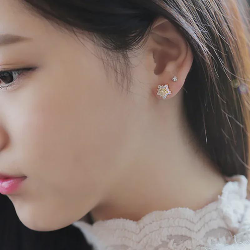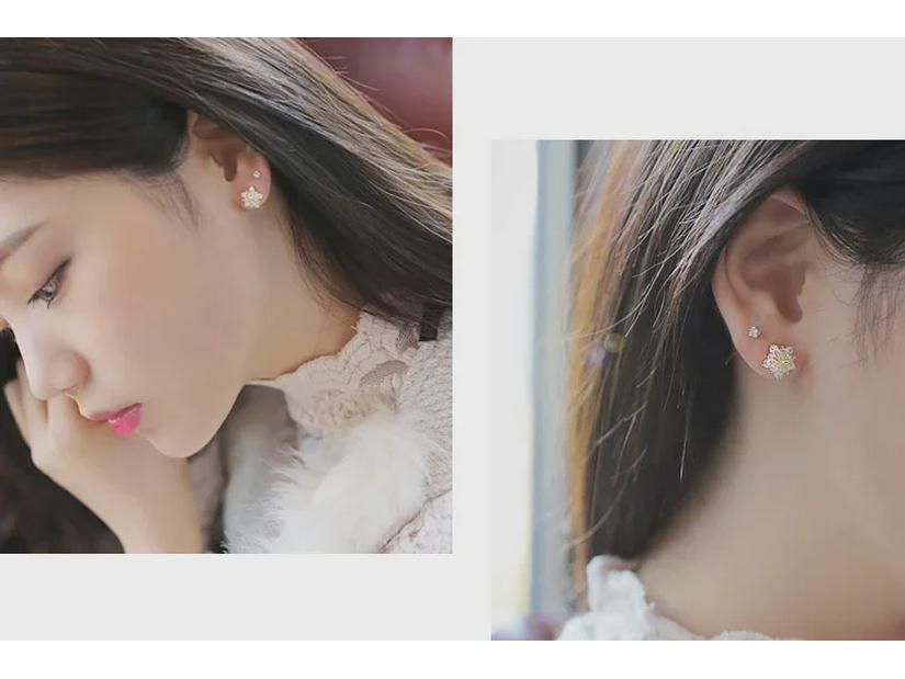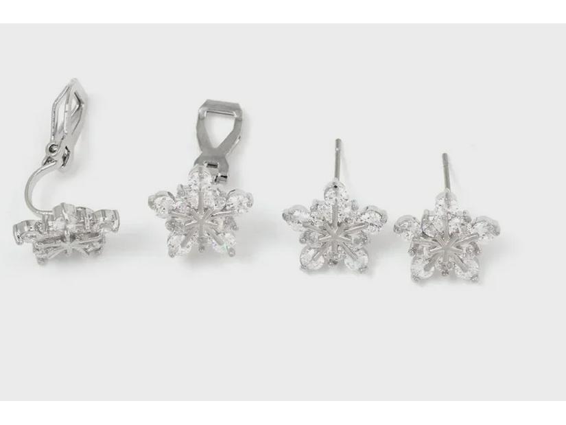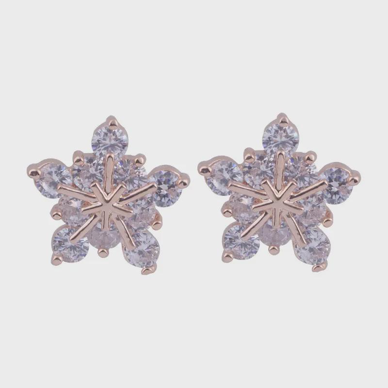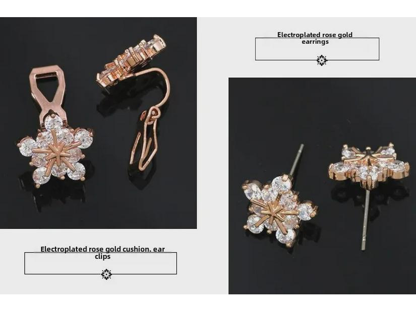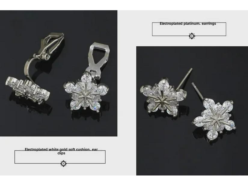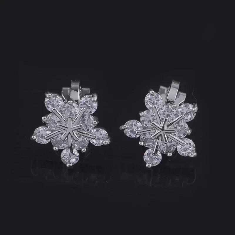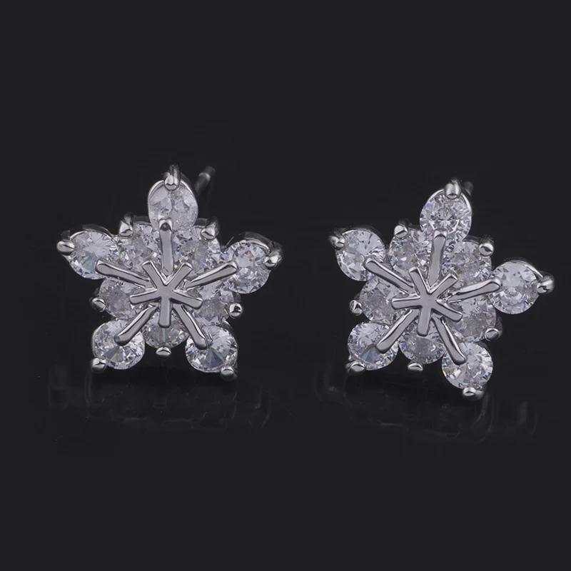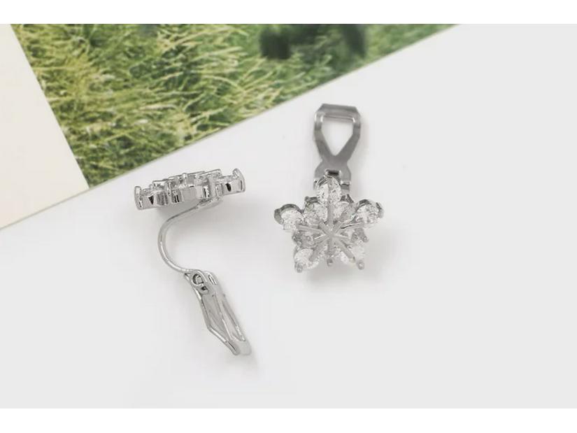 B1752 Изысканные рождественские серьги-снежинки с цирконом 3A — клипсы, проколы не требуются.